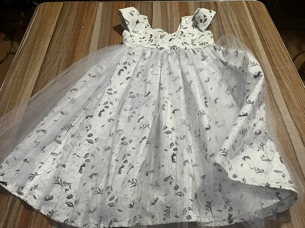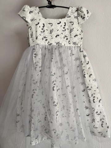 Pure, claire et lumineuse, la robe Jalia de la marque KIILAMA est en coton blanc avec un motifs fleuris noirs. Sa jupe est recouverte d’un double voile de gaze blanc pour sublimer voutre bout’chou. Elle vous dira Merci.